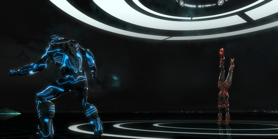 In the game, the program uses his or her Identity Disk as a weapon by throwing it at opponents and to block attacks. Show us your interpretation of this FX.